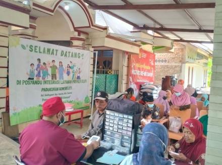 Suasana kegiatan berlangsung hangat dan penuh kebersamaan. Para kader Posyandu dengan sigap melayani peserta, mulai dari pendaftaran, pemeriksaan, hingga pendampingan kepada warga yang memerlukan konsultasi medis.