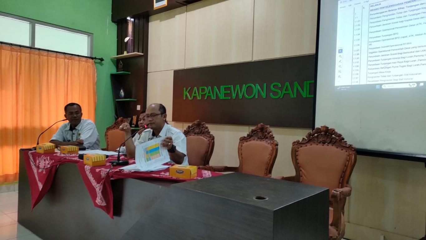 Setelah penyampaian materi, kegiatan dilanjutkan dengan paparan teknis dari Carik Gadingsari mengenai Rancangan APBKal TA 2026. Paparan tersebut kemudian langsung dievaluasi oleh Tim Kapanewon Sanden untuk memastikan kesesuaian dengan ketentuan serta optimalisasi alokasi anggaran.