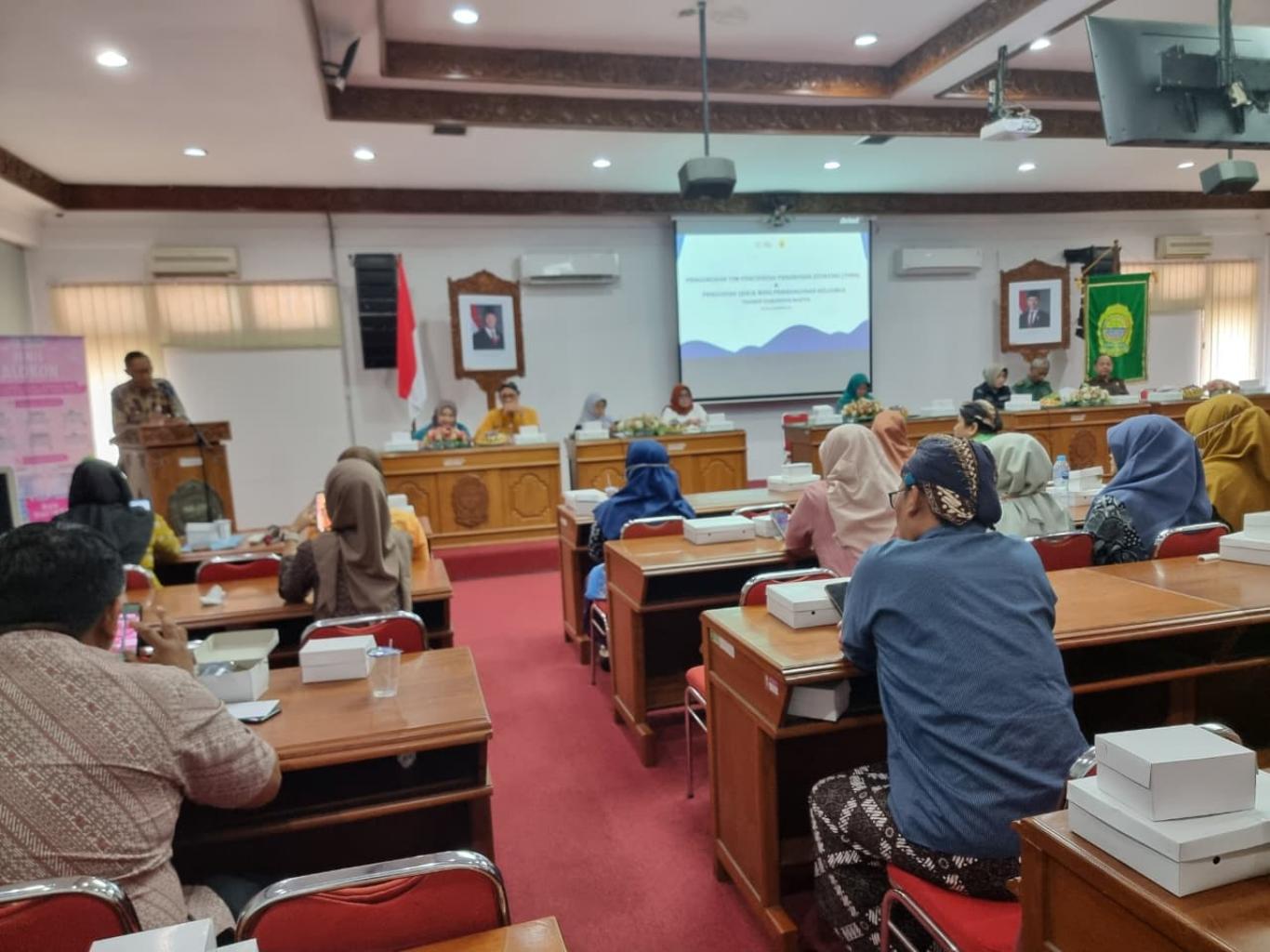 Acara diawali dengan sesi pembukaan, kemudian dilanjutkan pada agenda utama yaitu Pembacaan Surat Keputusan (SK) TPPS, Pengukuhan Tim Percepatan Penurunan Stunting, serta Penyerahan SK kepada para anggota tim yang telah ditetapkan. Pengukuhan ini menjadi langkah strategis Kabupaten Bantul dalam memperkuat komitmen bersama menurunkan angka stunting secara terarah dan terukur.
