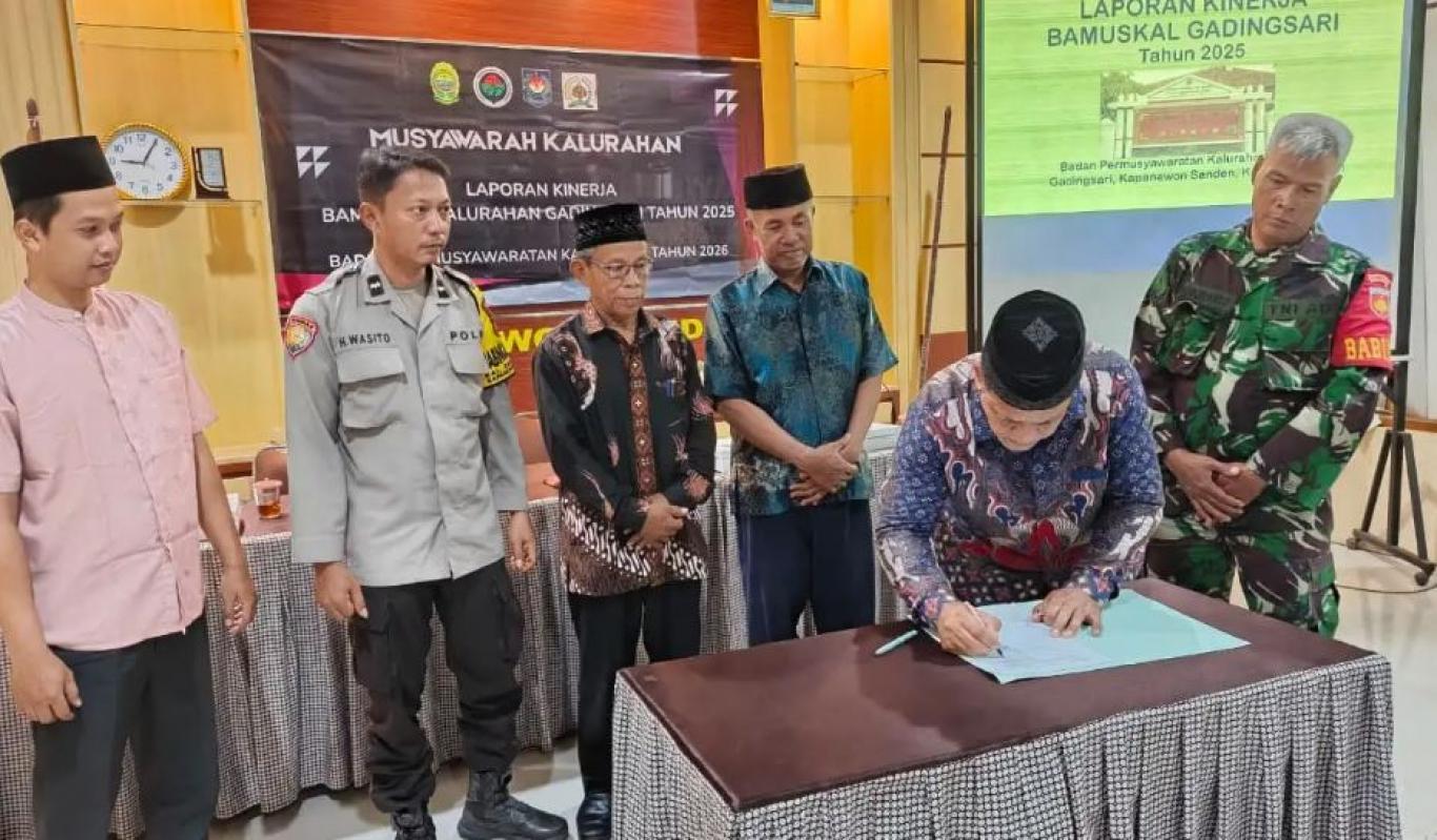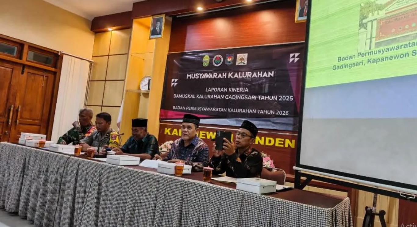 GadingsariNews - Badan Permusyawaratan Kalurahan (BAMUSKAL) Kalurahan Gadingsari melaksanakan kegiatan musyawarah kalurahan Laporan Kinerja Bamuskal Tahun 2025 pada hari Selasa, 21 April 2026 pukul 19.30 WIB- selesai. Kegiatan ini dilaksanakan di Grha Jaladri Kalurahan Gadingsari dan dihadiri oleh Lurah beserta Pamong Kalurahan Gadingsari, Panewu Sanden yang dihadiri oleh Kepala Jawatan Praja, Pendamping Desa, Babinsa dan Bhabinkamtimbas, Ketua Lembaga, serta tokoh masyarakat kalurahan Gadingsari.